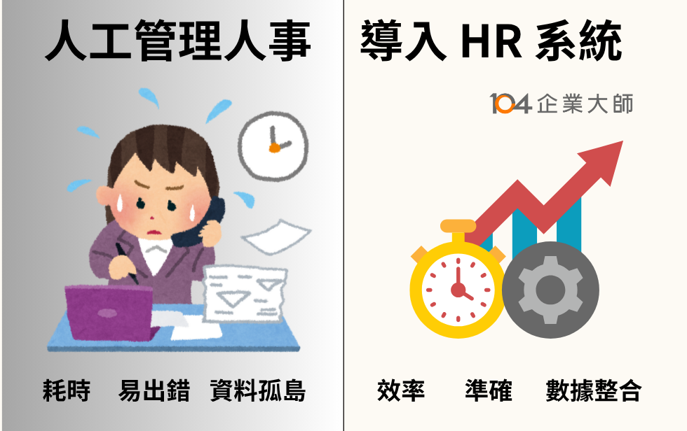 目前104企業大師提供免費試用三個月,百人以上企業推薦 HR MAX 人資系統,讓你的打卡、請假、加班及工資流程都合法,歡迎點入連結詢問專員>>立即了解