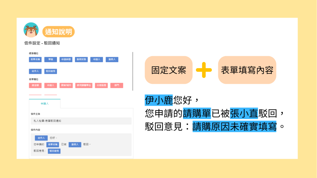 解決方案:你的專屬通知小秘書上線啦!系統提供 11 種超貼心的自動通知,讓表單的每一步都有人跟你「報備」: